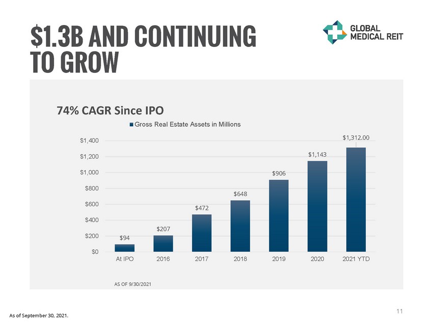 “We dig deeper to find value in properties and markets that other investors overlook. Our unique strategy is bolstered by favorable demographic trends and the shift in healthcare delivery to local markets and the smaller, specialized facilities we invest in.” Alfonzo Leon Chief Investment Officer 10