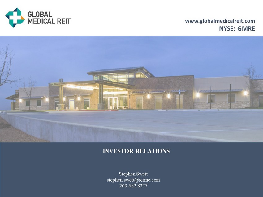Stephen Swett stephen.swett@icrinc.com 203.682.8377 www.globalmedicalreit.com NYSE: GMRE INVESTOR RELATIONS
