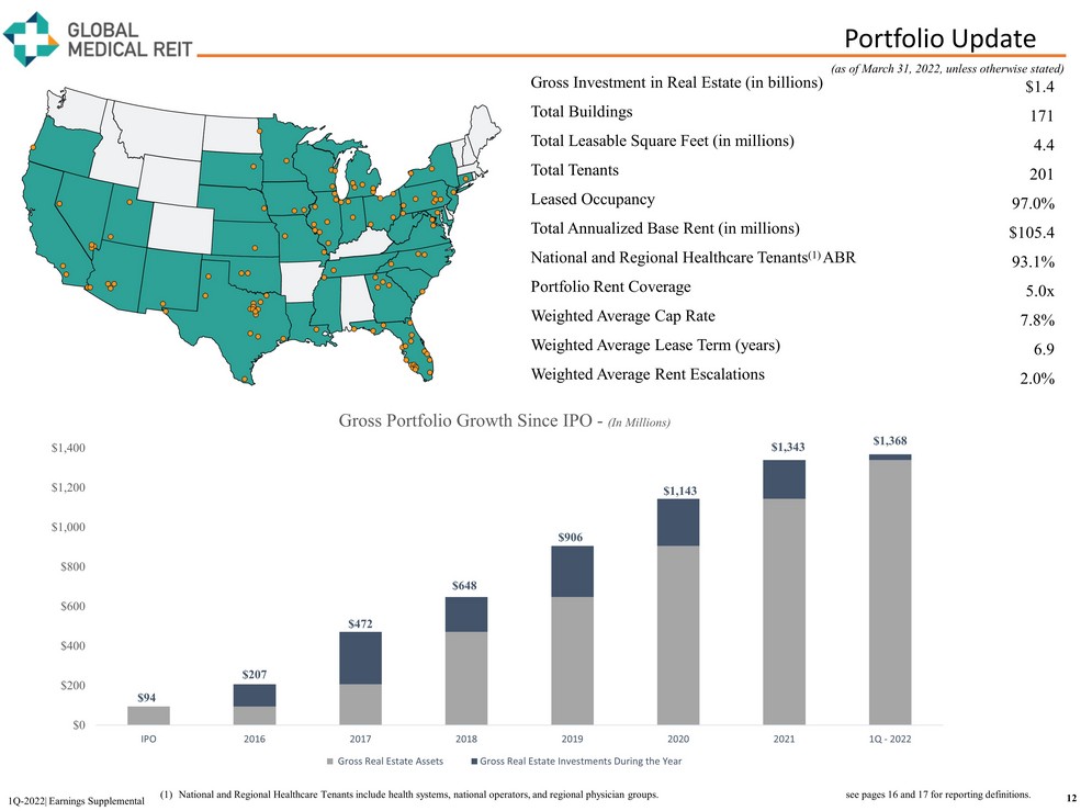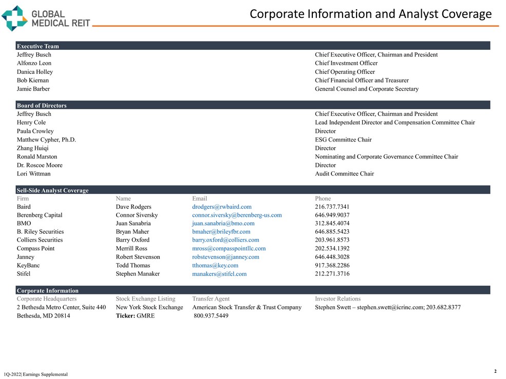 First Quarter 2022 Earnings Supplemental Three Months Ended March 31, 2022 www.globalmedicalreit.com NYSE: GMRE