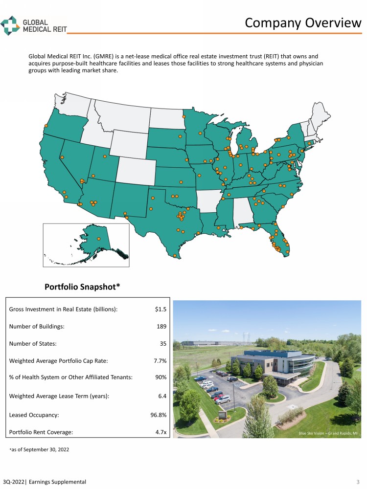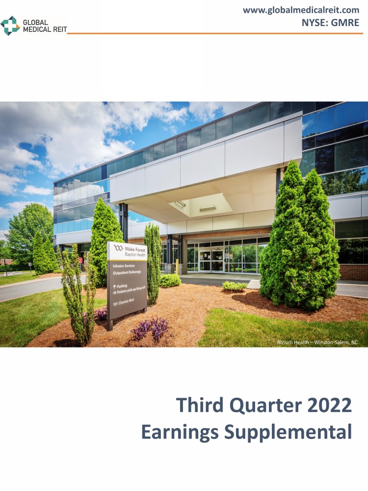 Third Quarter 2022 Earnings Supplemental www.globalmedicalreit.com NYSE: GMRE Wake Forest Medical – Winston - Salem, NC Atrium Health – Winston - Salem, NC