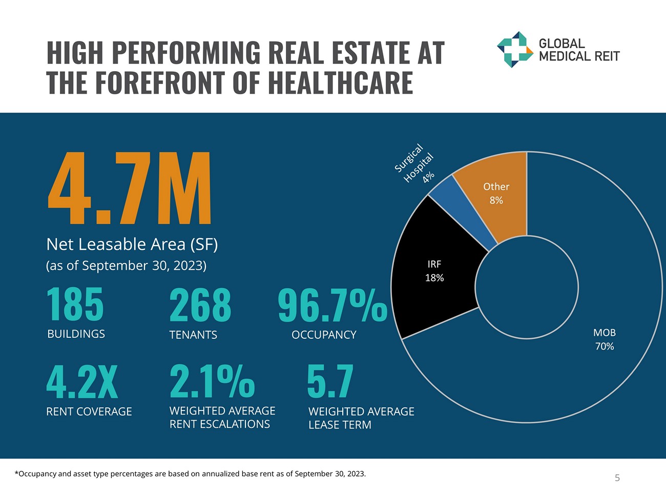 PROVEN ACQUISITION PERFORMANCE $94 $207 $472 $648 $906 $1,143 $1,343 $1,484 $1,425 $0 $200 $400 $600 $800 $1,000 $1,200 $1,400 $1,600 At IPO 2016 2017 2018 2019 2020 2021 2022 2023* 40% CAGR Since IPO Gross Real Estate Assets in Millions 4 *As of September 30, 2023.