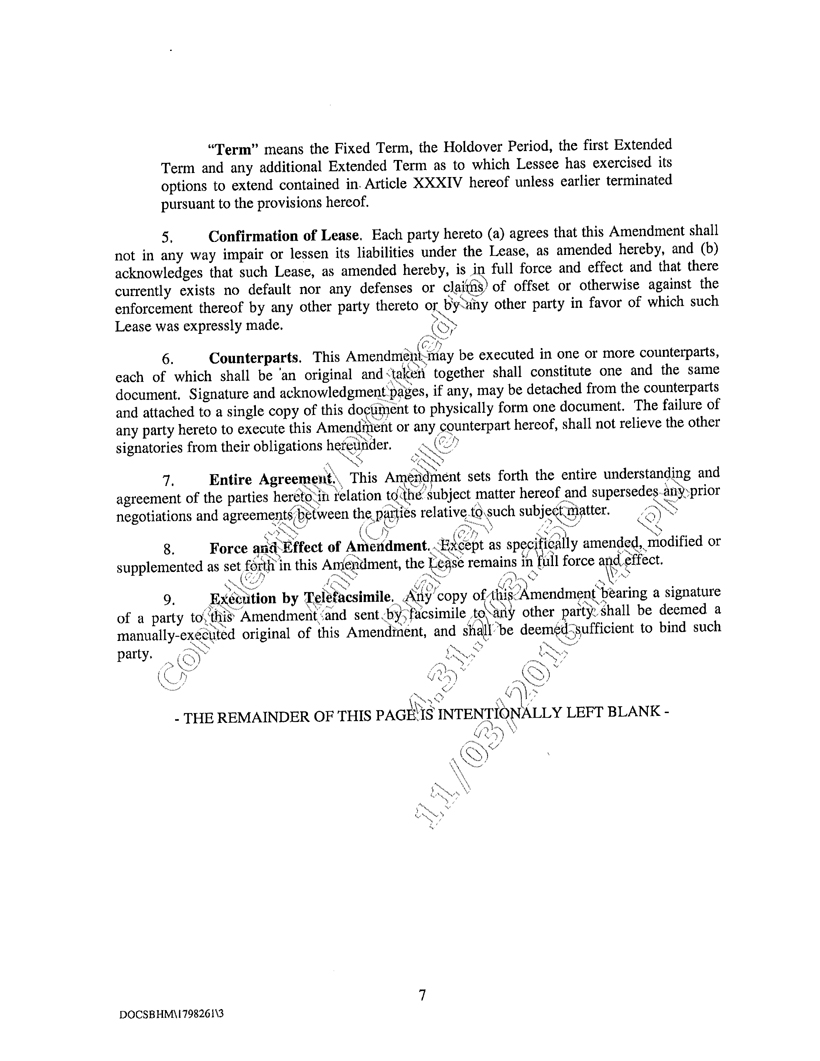 5. That the expiration date of the term of said Lease is May 6, 2011. The undersigned has no rights to renew or extend the term of the Lease except as set forth in the Lease;