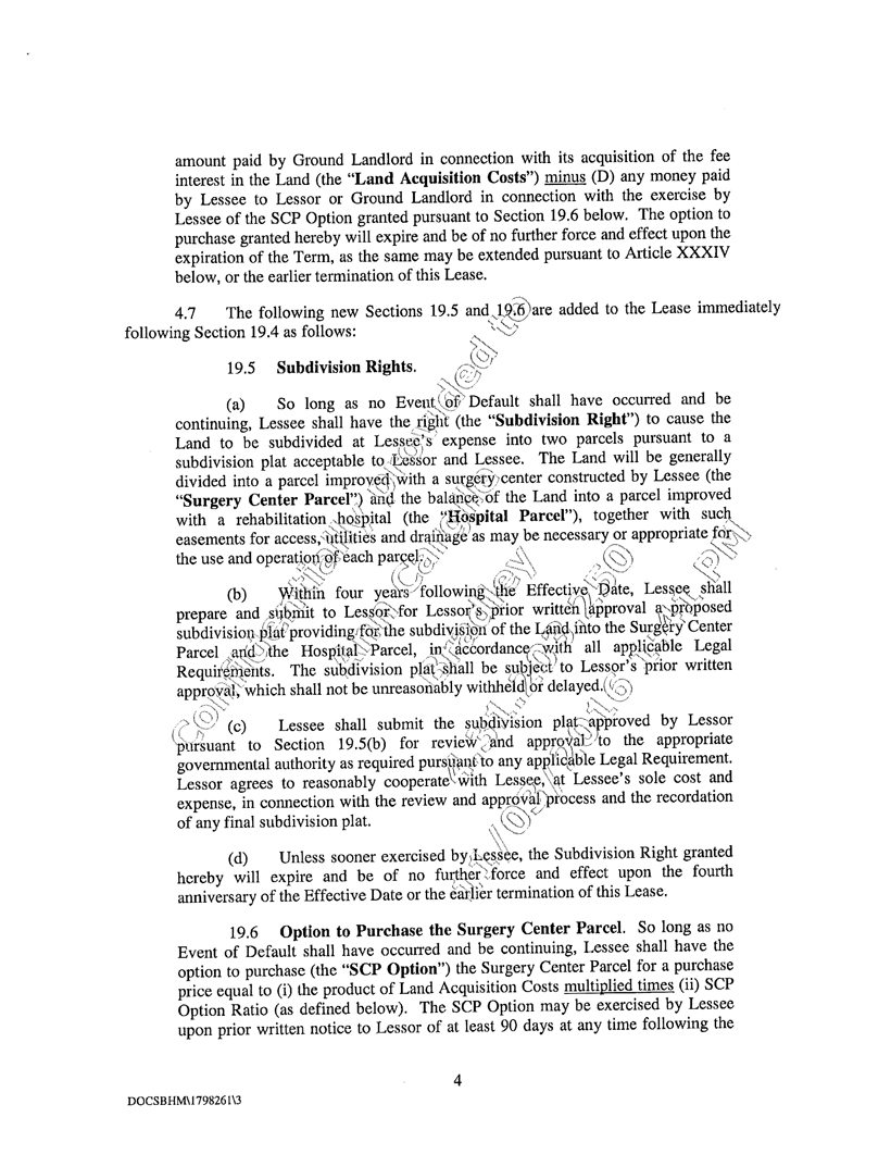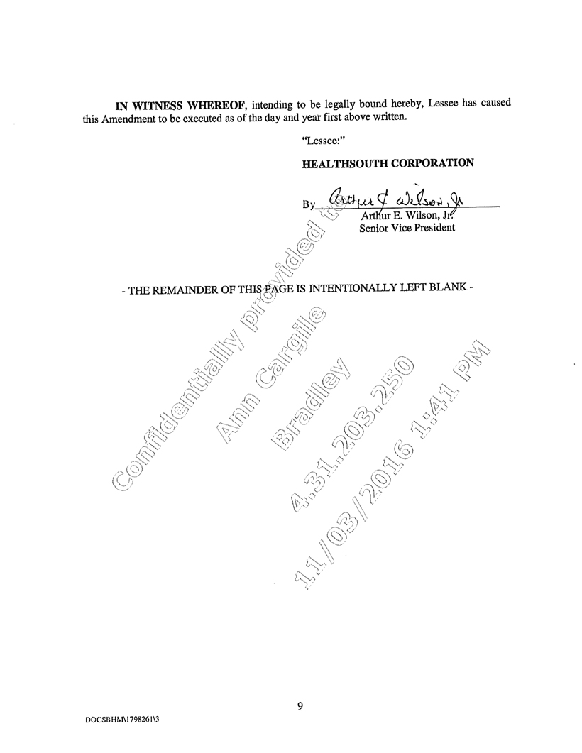 | 1. | Lease dated as of May 7, 1996, between the Assignor and HEALTHSOUTH Corporation. |