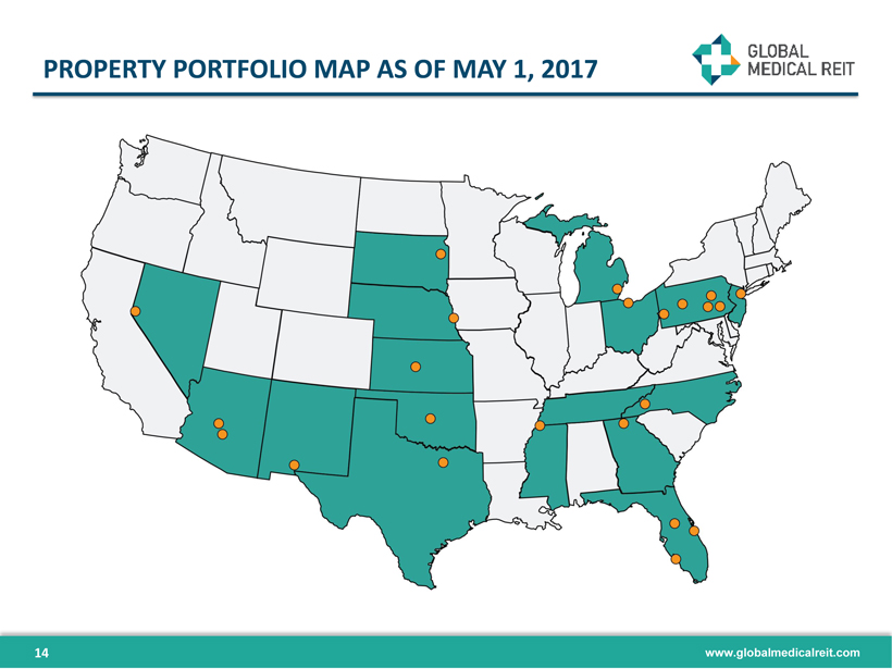 PROPERTY PORTFOLIO MAP AS OF MAY 1, 201714 www.globalmedicalreit.com