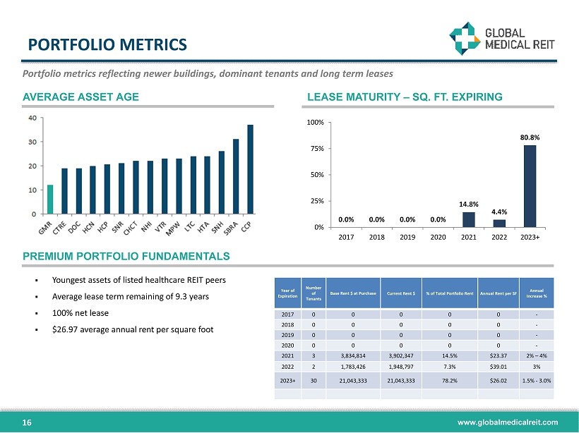 www.globalmedicalreit.com PROPERTY PORTFOLIO MAP* 15 *As of November 13, 2017