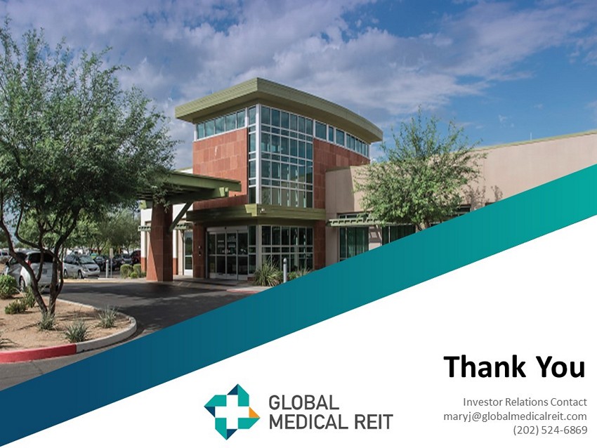 Investor Relations Contact maryj@globalmedicalreit.com (202) 524 - 6869 Thank You